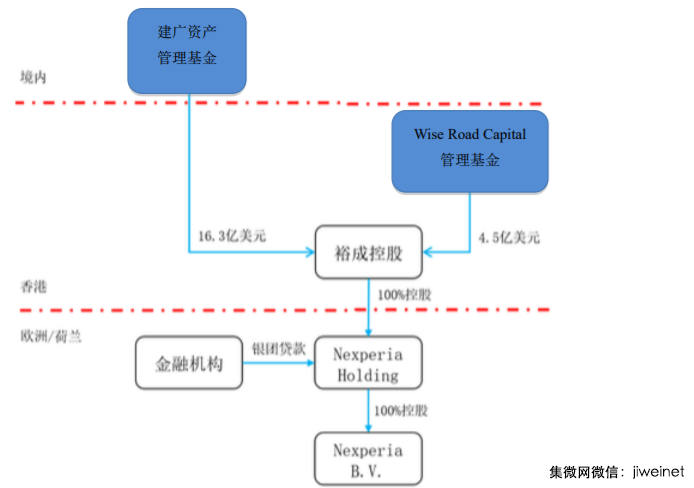 日对安世半导体完成收购,收购交易价格为27.5亿美元,其中建广资产管理的基金投入约16.3亿美元,WiseRoadCapitalLtd管理的基金投入4.5亿美元,合计约20.8亿美元全部投资到裕成控股,其余资金为境外银团贷款。
