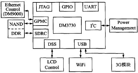 Devkit8500D评估板的基本结构如图2所示。该硬件平台采用的是TI公司的DM3730微处理器。