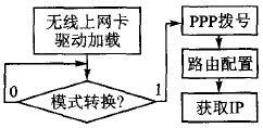 该无线路由器利用E392型多模无线上网卡在嵌入式Linux系统中进行PPP拨号,分别接入到TD-SCDMA,WCDMA以及TD-LTE实验网中。其具体实现流程如图3所示。