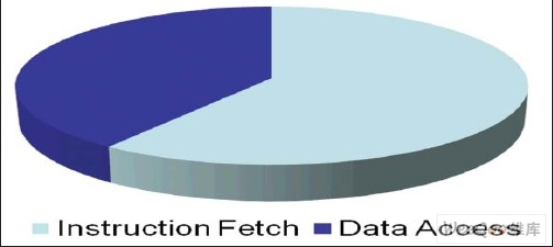 图1显示了普遍存在的事实,与程序有关的内存存取操作中有大约60%是指令抓取,另外40%才是数据存取。
