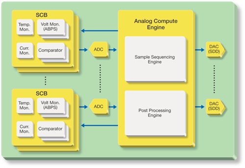 如上所述,SmartFusion架构的处理能力显而易见。此外,SmartFusion架构的灵活性优势还体现在以下事实中:许多前端处理任务根本不需要调用ARM Cortex-M3处理器。与其它片上元件一样,模拟计算引擎(ACE)也是一个全新的概念。ACE是一个半自治模块,可在无需ARM Cortex-M3处理器干预下执行扩展模拟预处理和后处理任务,比如信号采集的采样和排序。
