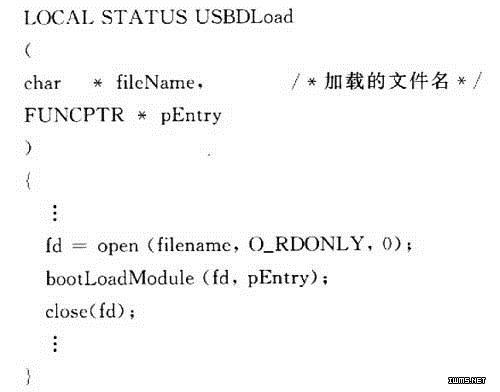 设计USBDLoad(),实现映像文件VxWorks从优盘设备加载。USBDLoad()函数主要包括以下语句: