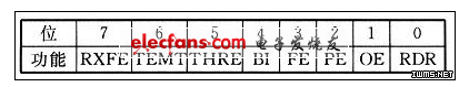 RXFE:如果一个带有接收错误(如帧错误、奇偶错误或间隔中断)的字符装入UORBR时,该位置位。