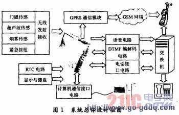 (2)中央控制器接收到报警信号后,通过固定电话网络自动拨打预置电话号码进行语音报警或通过GPRS通信模块发送短信提示;