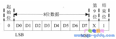MCS-51系列单片机串行口方式2、3很适合主从式的通信结构。当串口以方式2或方式3工作时,发送和接收的每一帧数据都是11位(如下图所示):1位起始位(0),8位数据位(低位在前),一位可设置的第9位数据和一位停止位。其中,第9位数据位可用于识别发送的前8位数据是地址帧还是数据帧,为1则为地址帧,为0则为数据帧,此位可通过对SCON寄存器的TB8位赋值来置位。当TB8为1时,单片机发出的一帧数据中的第9位为1,否则为0。