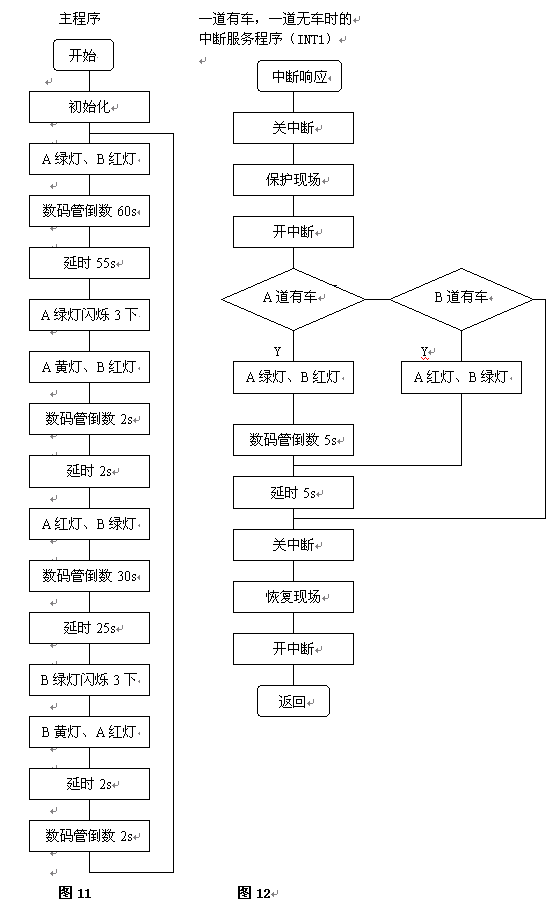 交通信号灯模拟控制系统主程序及中断服务程序的流程图如下图所示。