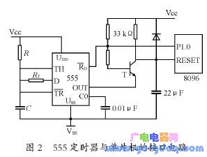 3、看门狗电路及运行指令以INTEL公司的16 位单片机8096 为例,555定时器作为看门狗与单片机的接口电路可设计如图2 所示。