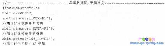 单片机I/O端口驱动74LS165主要包括函数声明管脚定义部分、数据输入函数以及数据输出函数。