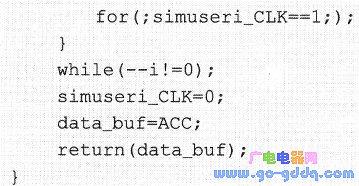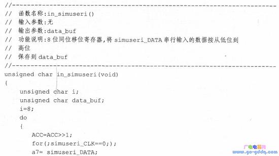 数据输入函数in_simuseri()实现8位数据的从低位到高位的串行输入,程序代码如下所示: