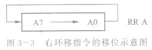 这条指令的功能是累加器A的内容向右环移一位,Acc.O移人Acc.7,不影响其他标志位,如图3-3所示。