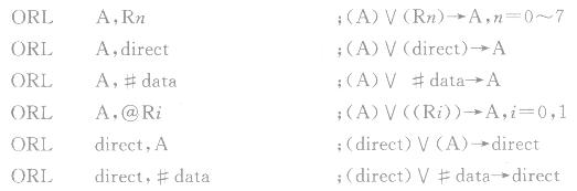 这组指令的功能是在所指定的变量之间执行以位为基础的逻辑或操作,结果存到目的变量寄存器或存储器中。操作数有寄存器寻址、直接寻址、寄存器间接寻址和立即数寻址方式。