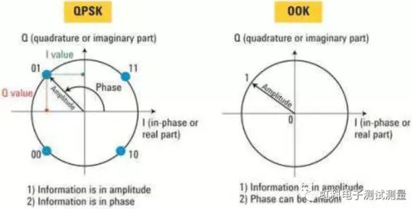 被广泛使用的I/Q调制是正交相移键控(QPSK),这种调制方法有很好的频谱和能量效率。在现代通信系统中,高复杂度的波形随处可见。QPSK技术使频谱带宽得到了充分利用。因为如果信噪比足够,那么为了获得较高的数据速率可以不占用所有可用的频谱带宽 。