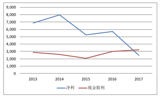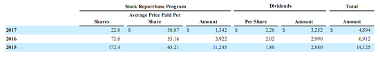 同时股票回购金额13亿美金,为近5年来最低。2015年大量回购股票为达112亿美金,2016年40亿美金。