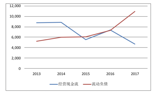 流动负债2017年比2016年增加50%,从73亿增长到109亿。而经营现金流仅有47亿左右(即便加上罚款18亿,也远低于短期负债金额)。