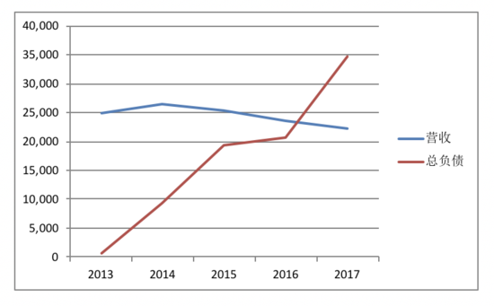 长期负债和短期负债均大幅增加,2017年总负债超过了营收,负债率高达156%。