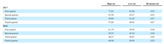 2017年净利比2016年下降57%,经营现金流下降37%,以及准备收购NXP的同时,仍然发送大量的股利,金额高达近33亿,甚至超过当年净利,每股现金股息也达到新高。