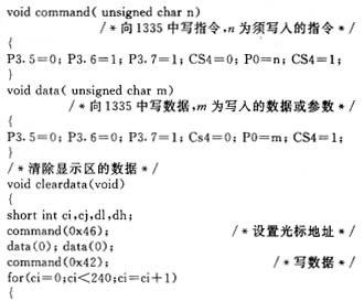 本设计中LCD显示使用的DMF50174是320×240点阵,由SED1335控制,每屏可显示20×15共 300个汉字,下面给出最基本的显示程序,在此基础上可以很容易地在LCD上显示汉字。