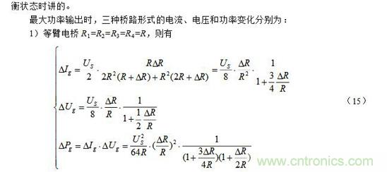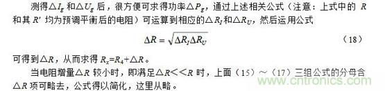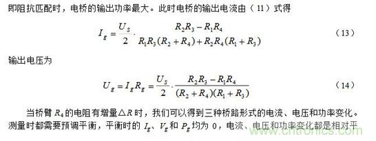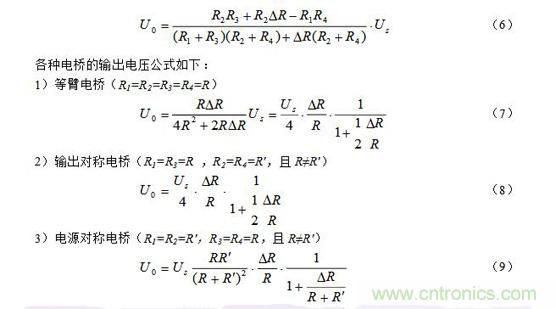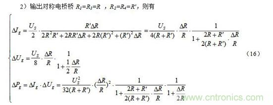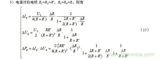 注意:上面(7)~(9)式中的R和其R′ 均为预调平衡后的电阻。此外,当电阻增量△R较小时,即满足△R《《R时,上面(7)~(9)三式的分母中含△R项可略去,公式可得以简化,这里从略。