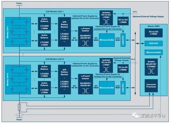 系统还要求BMS具备较低功耗以减少对电池电量的消耗,同时避免加剧电池不平衡,所以监控器IC和隔离电路的功耗应尽可能低。而且未来趋势是需要主动平衡方案。