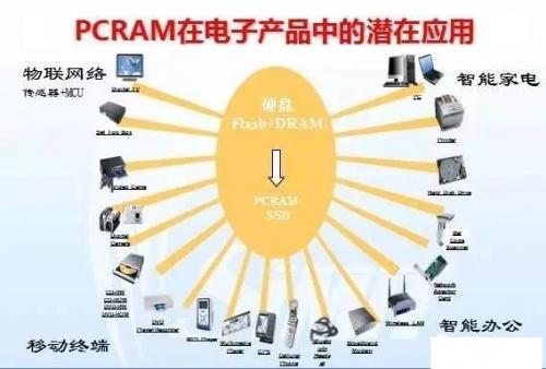 PCRAM在电子产品中的潜在应用领域有:硬盘(从Flash+DRAM到PCRAM SSD),以及物联网、移动终端、智能家电、智能办公等等。Flash依靠的是快速读出速度、容量和价格推动产品升级换代,但其毫秒级的擦写速度、高操作电压及嵌入式与新型CMOS技术不兼容,这些都制约了Flash的进一步发展。与Flash比较,PCRAM的高速读、写和擦,与新型CMOS工艺兼容,容易实现高密度结构。