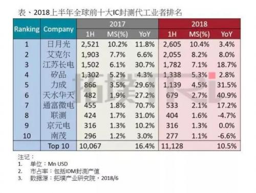 以下是集邦咨询发布的封测厂商排名情况