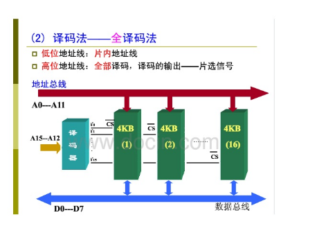 采用这种总线结构按照规定的时序能够最大程度的利用单片机的全部地址线。这就是单片机的编址。编址分为线选法和译码法,译码法分为全译码、部分译码。线选法的优点是简单但是非常浪费地址线;全译码法能够最大程度的利用全部地址线,但是电路很复杂需要一些与非门的配合才行。一般用部分译码法性价比最高,尤其是在外接了存储芯片时部分译码法很方便。