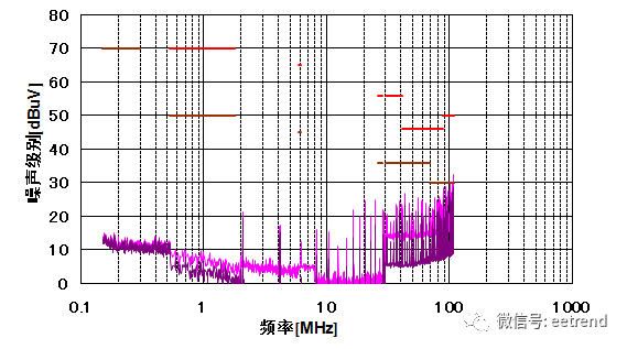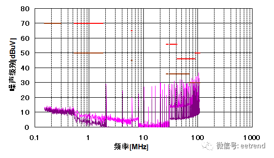 图 7:采用差模和共模滤波器的U型布局的EMI性能