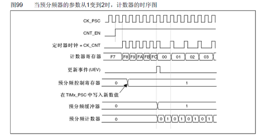 对不同的预分频系数,计数器的时序图为: