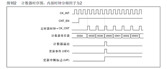 更新:计数器向上溢出/向下溢出,计数器初始化(通过软件或者内部/外部触发)