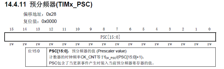 作用:对CK_PSC进行预分频。此时需要注意:CK_CNT计算的时候,预分频系数要+1。