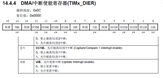 DMA/中断使能寄存器(TIMx_DIER)