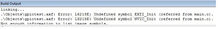 复制完后发现很多错误,这时需要一一解决。其中下图的错误解决方法:LIB加两个库文件misc.c和stm32f10x_exit.c。
