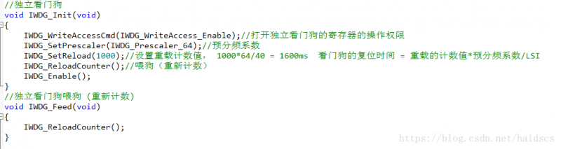 独立看门狗的配置代码: