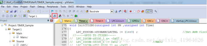 一.打开你的 Keil 工程,点击 option 图标,如下图红色框图标: