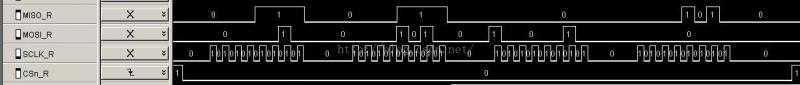 注意:SSEL第一次为低电平使能时,MISO变为高电平,然后立即变为低电平,这表示从设备芯片已经装备好(Thefirst time CSn goes low, MISO goes high and then low again immediately,indicating that the chip is ready.)。