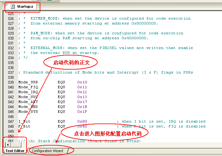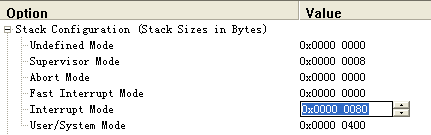 若将上图的interrupt Mode的值该为0x0000 0100,则启动代码的“IRQ_Stack_Size EQU 0x00000080”自动变为“IRQ_Stack_Size EQU 0x00000100”