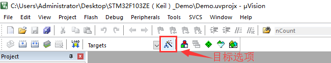 2.从菜单中打开,Project -> Options for Target,如下图: