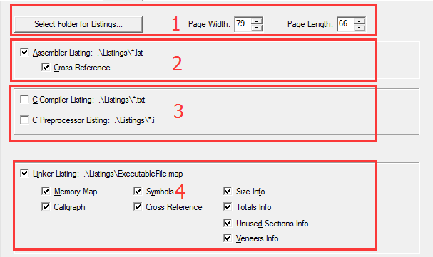 这个选项是关于生成列表相关的选项,对代码分析比较透彻的工程师就需要了解这个选项。常见的就是map地址的分布,就是在这里配置生成的