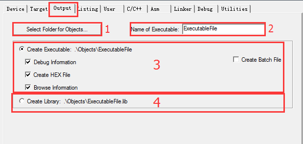 输出的可执行文件和库的名称就是在这里定义。比如我们常见输出Hex文件,其名称就是这里定义的。