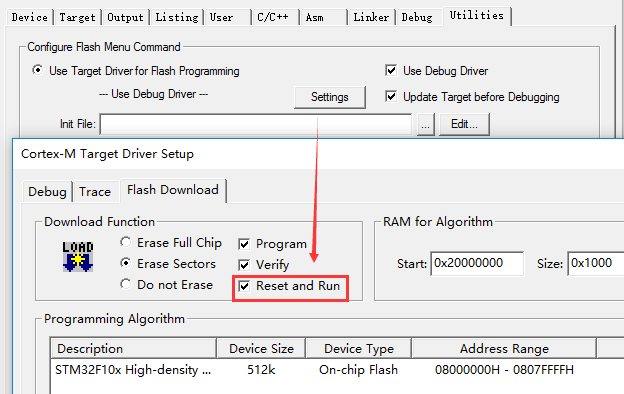 很多人下载程序之后,需要复位一下程序才运行,原因在于没有勾选“Reset and Run”,如下图: