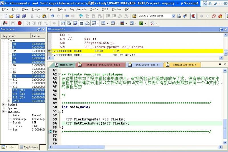 前几天回校调试基于407的程序,以前都是在别人的程序基础上面改写只要能实现想要的功能不会管其他的,结果基本就没用用过硬件JLINK的硬件仿真,那晚蔡师姐帮忙一直弄到夜里12点多,真的很感谢她 后来师姐帮我发现那块板子的系统时钟不是原以为的时钟168MHZ。后来用107程序查看了下发现那种查看系统时钟的方法是可行的,今晚我用103也查看了下系统时钟也是所想象的72MHZ.