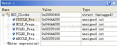 最后看到了各时钟的寄存器内容,用计算机算了下SYSCLK的发现确实是72000000。