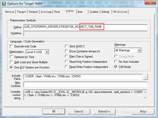 3.在C/C++选项增加个向量VECT_TAB_RAM