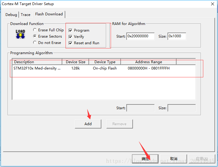 5.首先先是要打勾,然后根据芯片flash的大小添加相应的信息,最后点击确定 即可