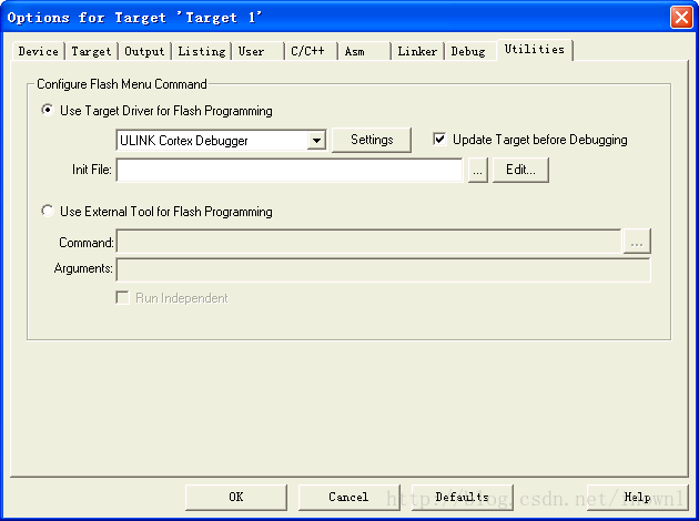 用Ulink2时,有时候keil提示 no Jlink found ,可以在utilities 里设置默认的flash下载器,并在setting里设置flash芯片型号。若仍旧连不上,重插Ulink2试试。