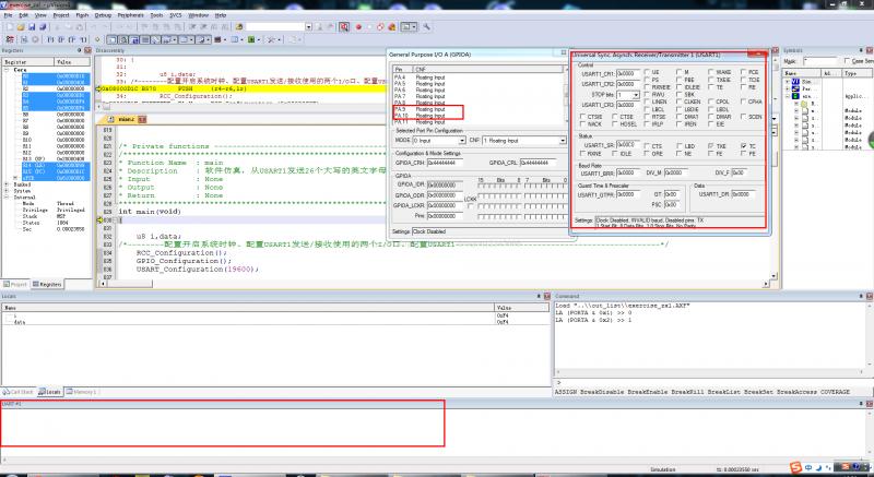 1、串行通信 软件仿真STM32通过串口USART1发送26个英文字母(配置寄存器)