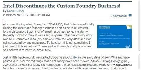 2018年12月19日 | 英特尔放弃晶圆代工业务,微处理器才是核心重点