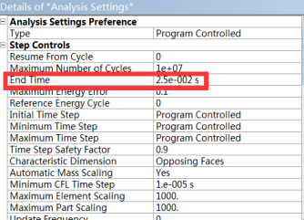 ⑤ Analysis settingi中,设置end time为2.5e-2s;
