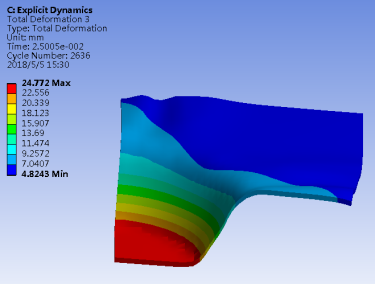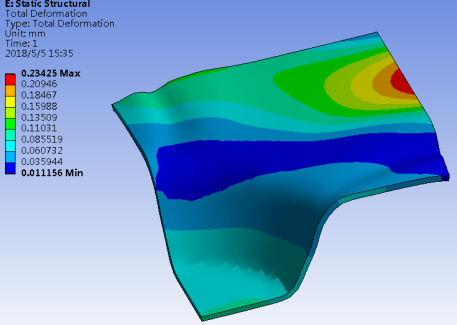 通过以上介绍,以Workbench平台为依托,利用Explicit Str和Mechanical能够快速方便的实现冲压及回弹仿真,避免了采用传统的LS-DYNA经典界面需要掌握大量命令流及理论的弊端,使工程设计人员能够快速进行薄板件的冲压及回弹仿真。