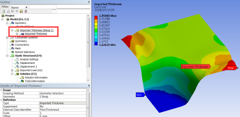 ⑪ 点击D项的D3 Model,在import Thickness右键Import,得到冲压完成后的Blank厚度分布图;